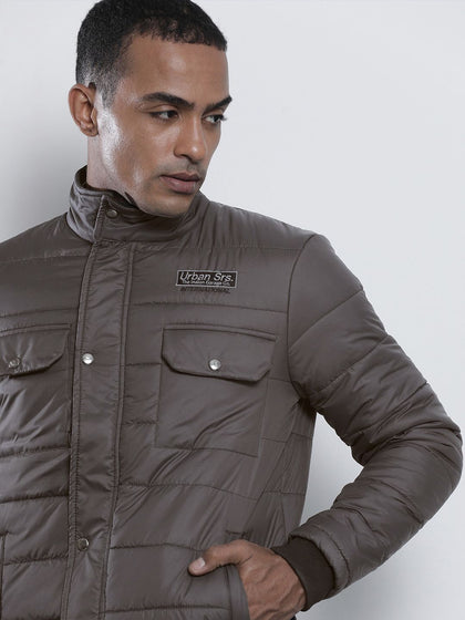 The Indian Garage Co Men Charcoal Grey Solid Padded Jacket