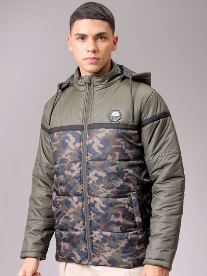 The Indian Garage Co Men Hooded Camouflage Printed Casual Puffer Jacket