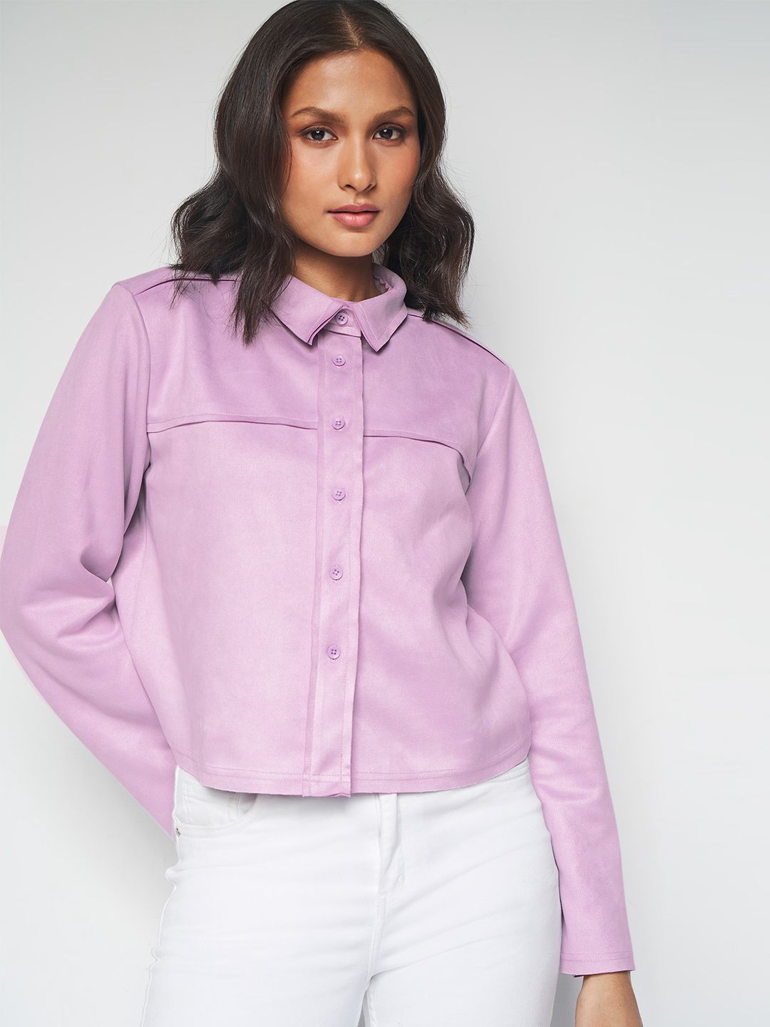 Purple solid tailored jacket, has a spread collar, has a hook and eye closure, long sleeves, straight hemline, polyester lining
