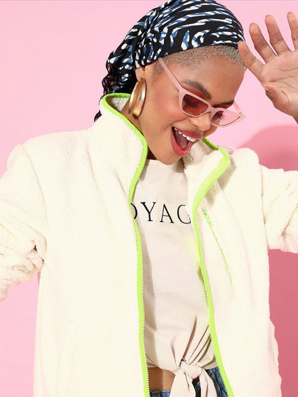 SASSAFRAS Women White Solid Faux Fur Tailored Jacket
