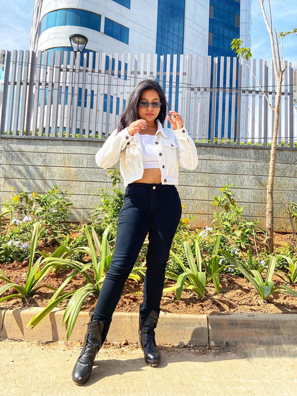 SASSAFRAS Women Alluring White Floral Kidult Kitsch Jacket