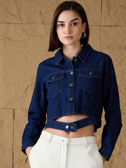 SASSAFRAS Women Blue Acid Wash Denim Jacket