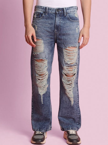 Bene Kleed Men Wide Leg Highly Distressed Heavy Fade Jeans