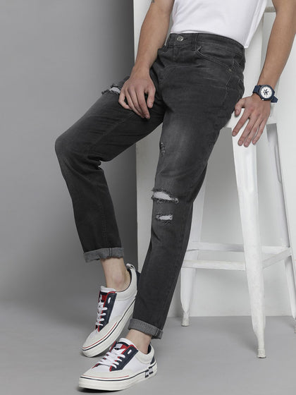 Being Human Men Slim Fit Low Distress Light Fade Jeans