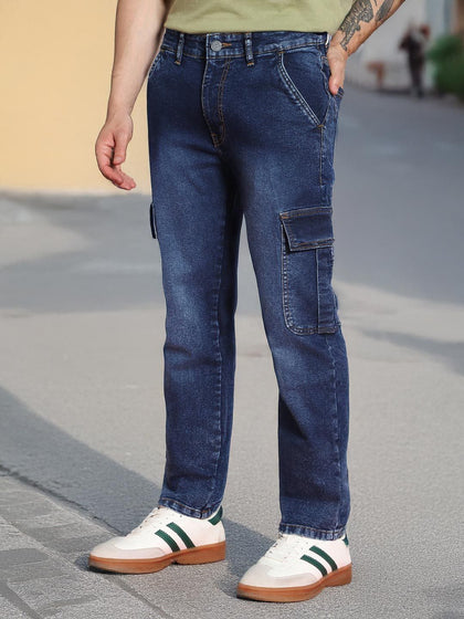 Urbano Fashion Men Baggy Fit Pure Cotton Cargo Jeans