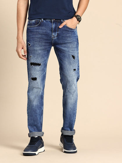 Being Human Men Slim Fit Low Distress Heavy Fade Stretchable Jeans