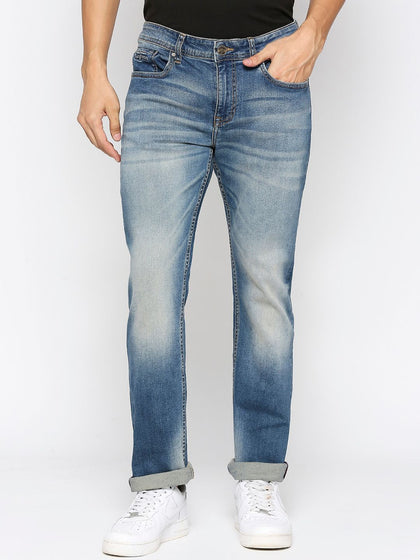 Being Human Men Blue Clean Look Mid-Rise Heavy Fade Jeans