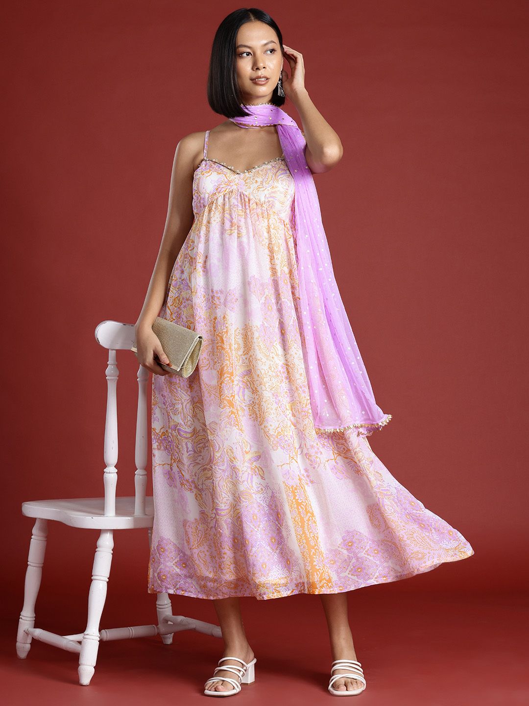 all about you Printed Ethnic Maxi Dress with Dupatta