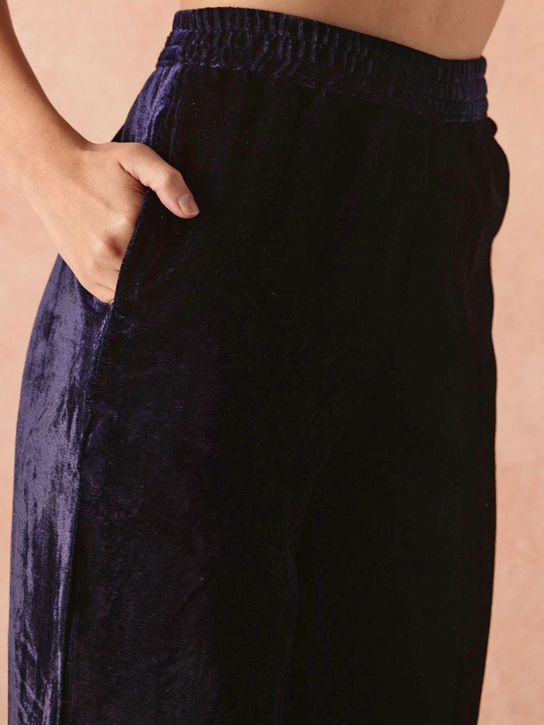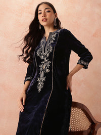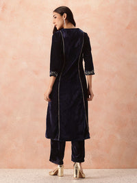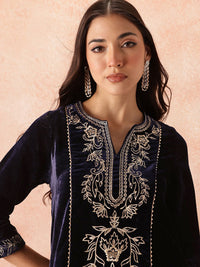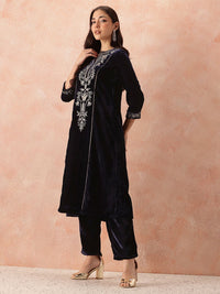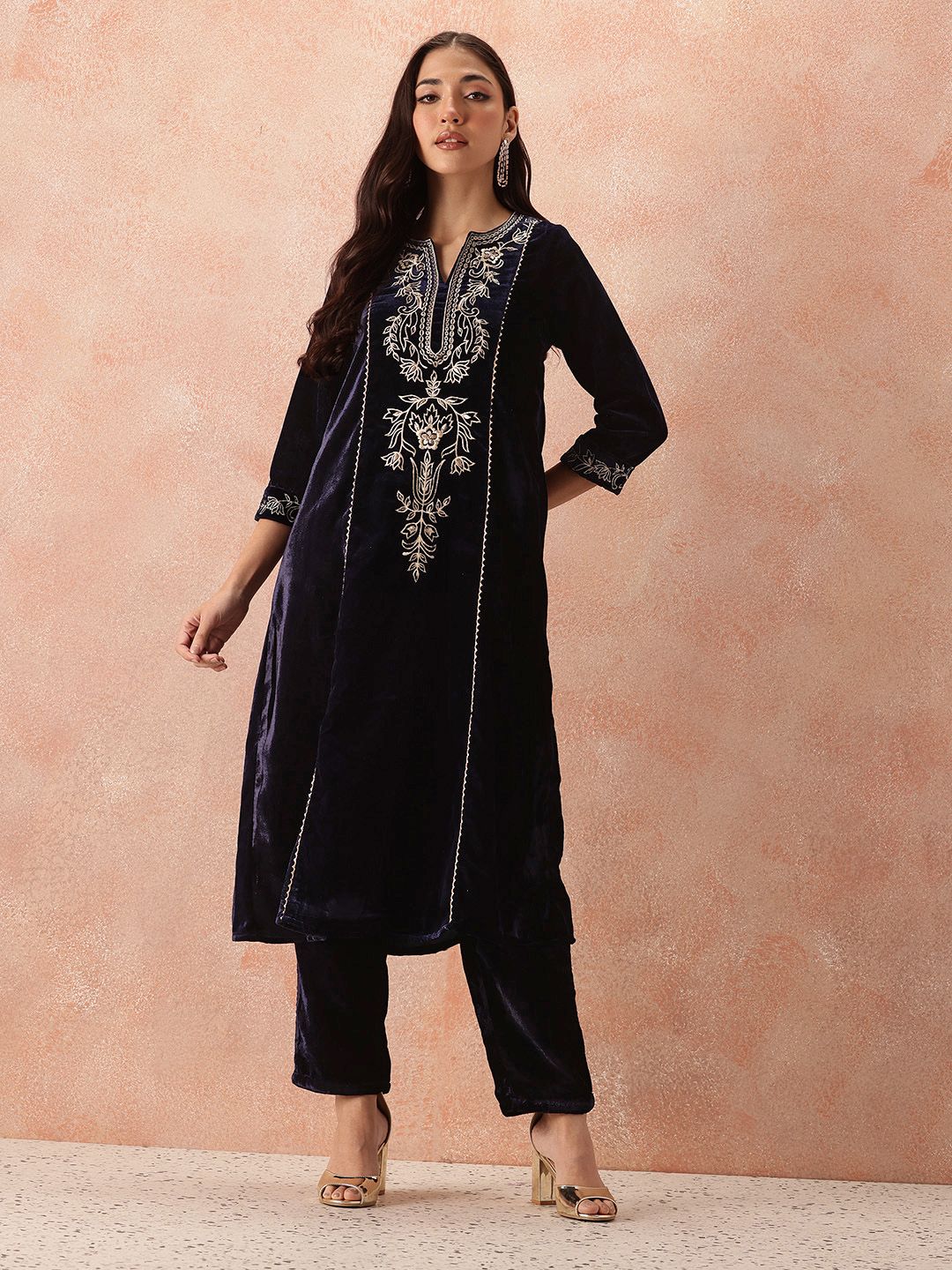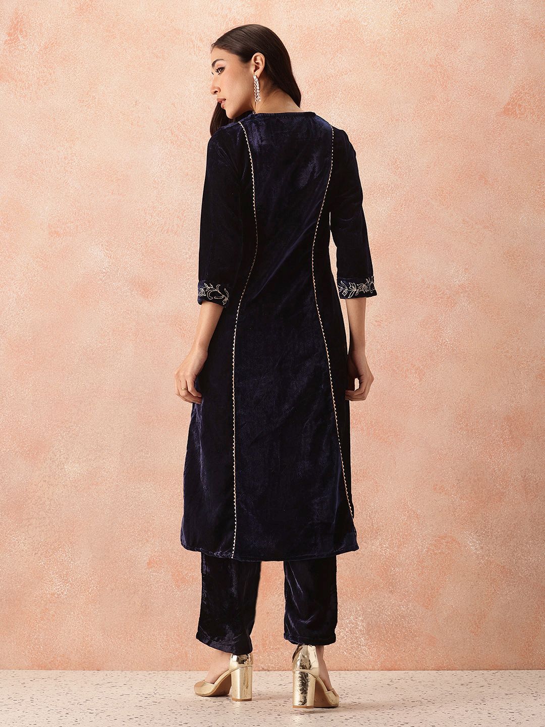 all about you Velvet Finish Floral Embroidered Gotta Patti Kurta with Trousers