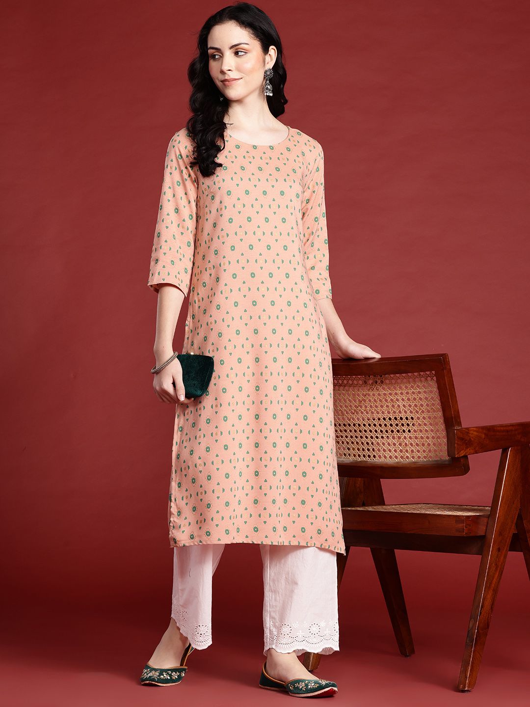 Anouk Geometric Printed Straight Regular Kurta