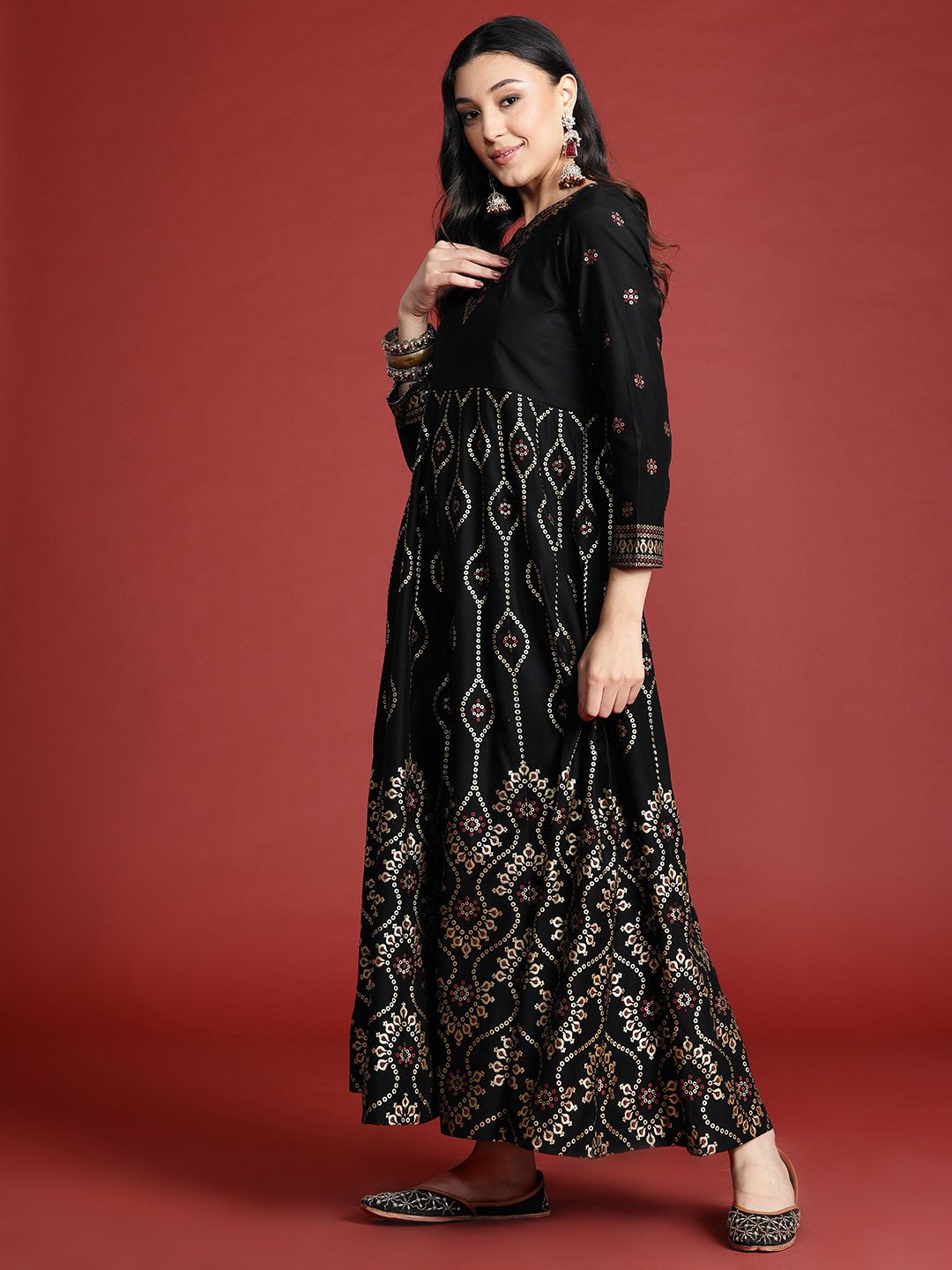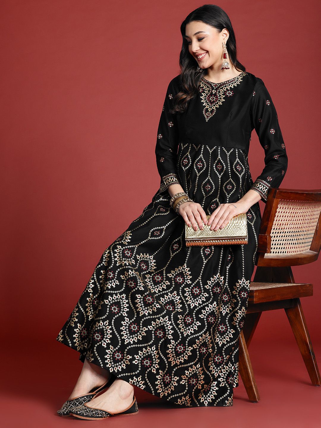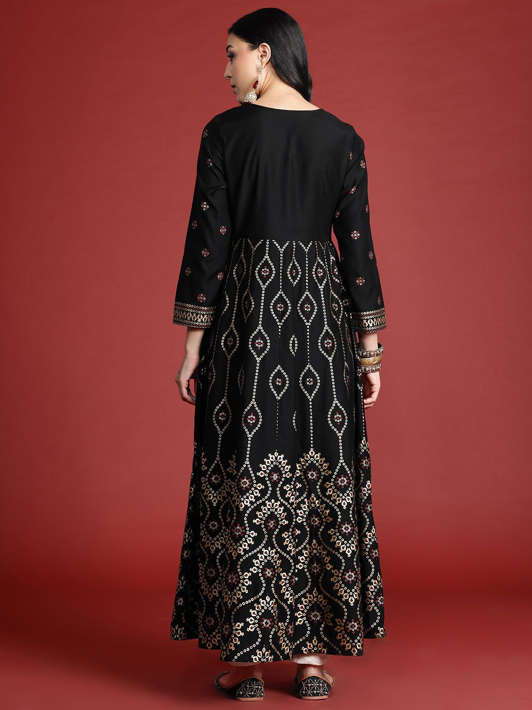Anouk Tyohaar Foil Ethnic Print Anarkali Kurta
