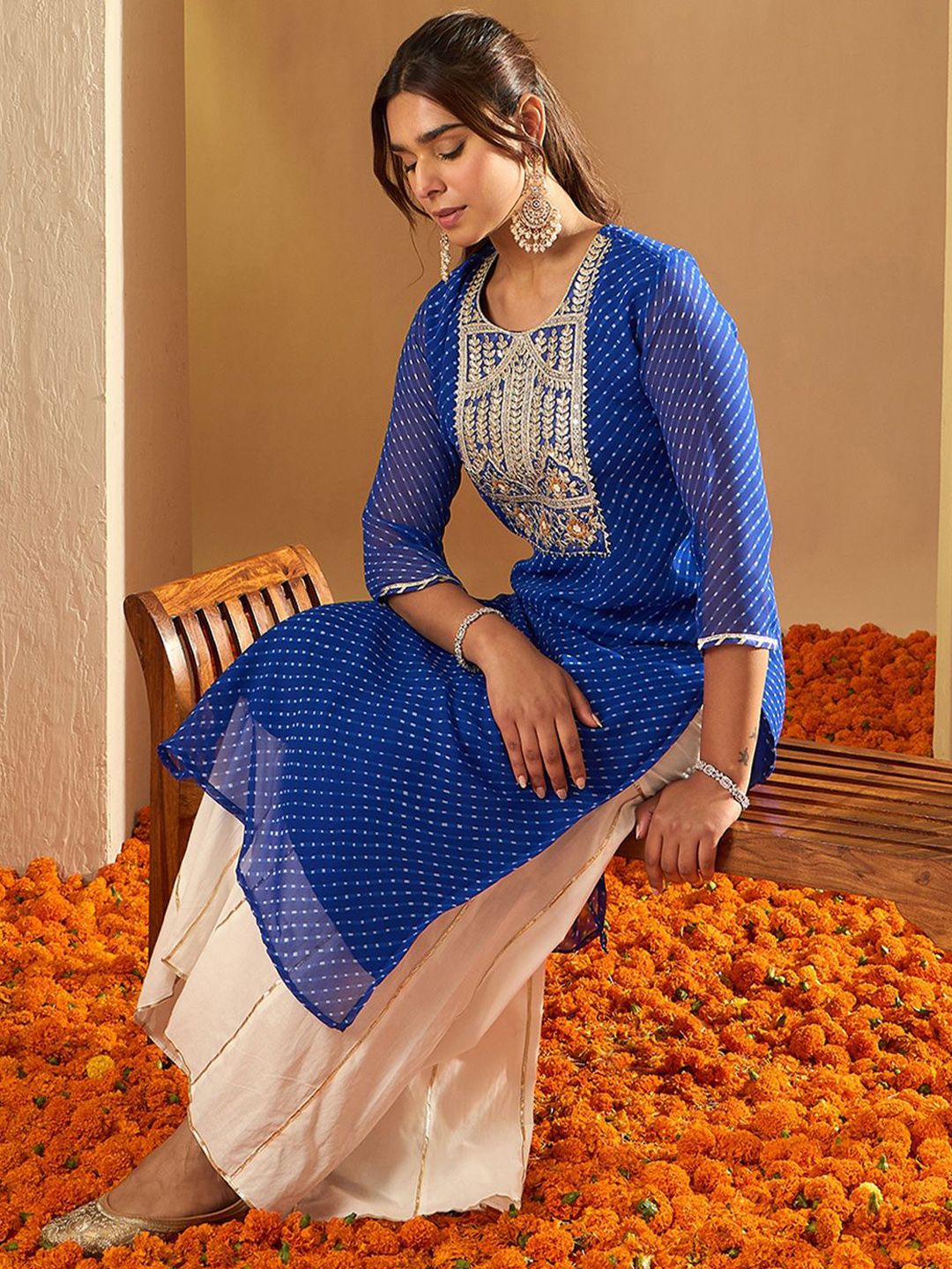 Indo Era Ethnic Motifs Embroidered Gotta Patti Straight Kurta