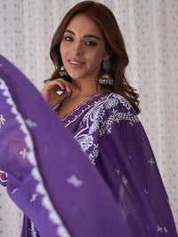 Indo Era Ethnic Motifs Embroidered V-Neck Pure Cotton Kurta with Trousers & Dupatta