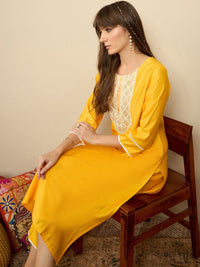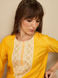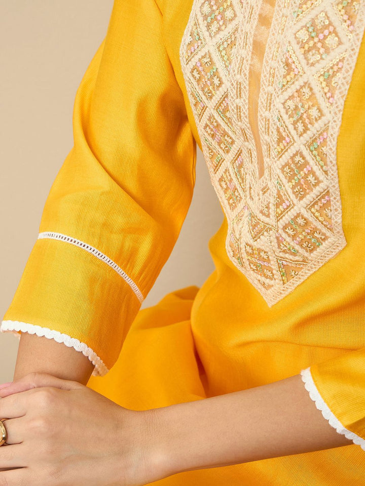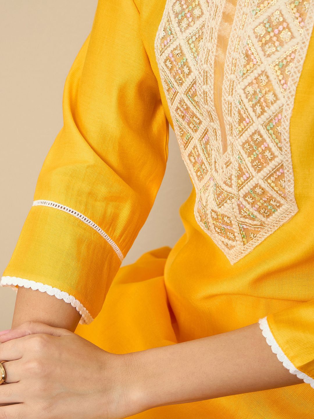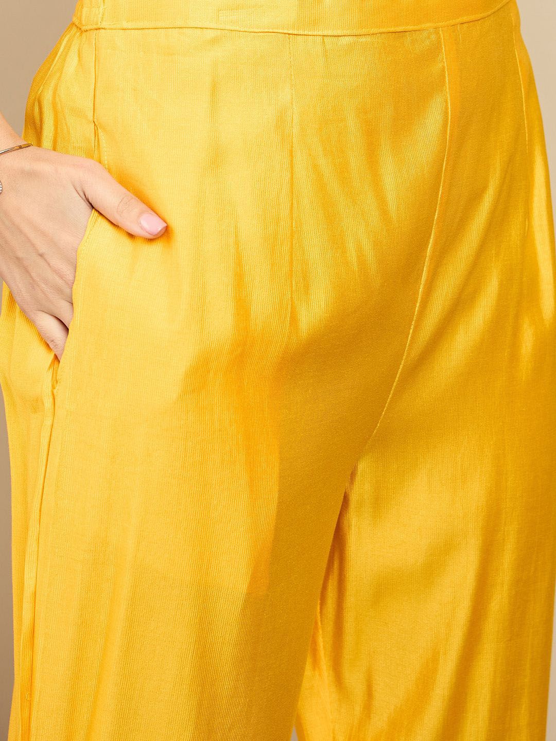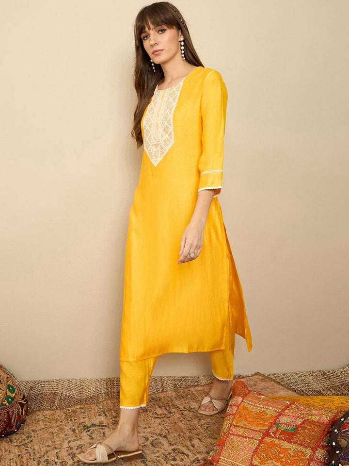 Indo Era Floral Embroidered Sequinned Liva Straight Kurta With Trousers