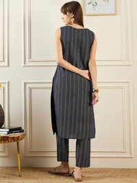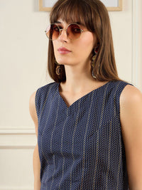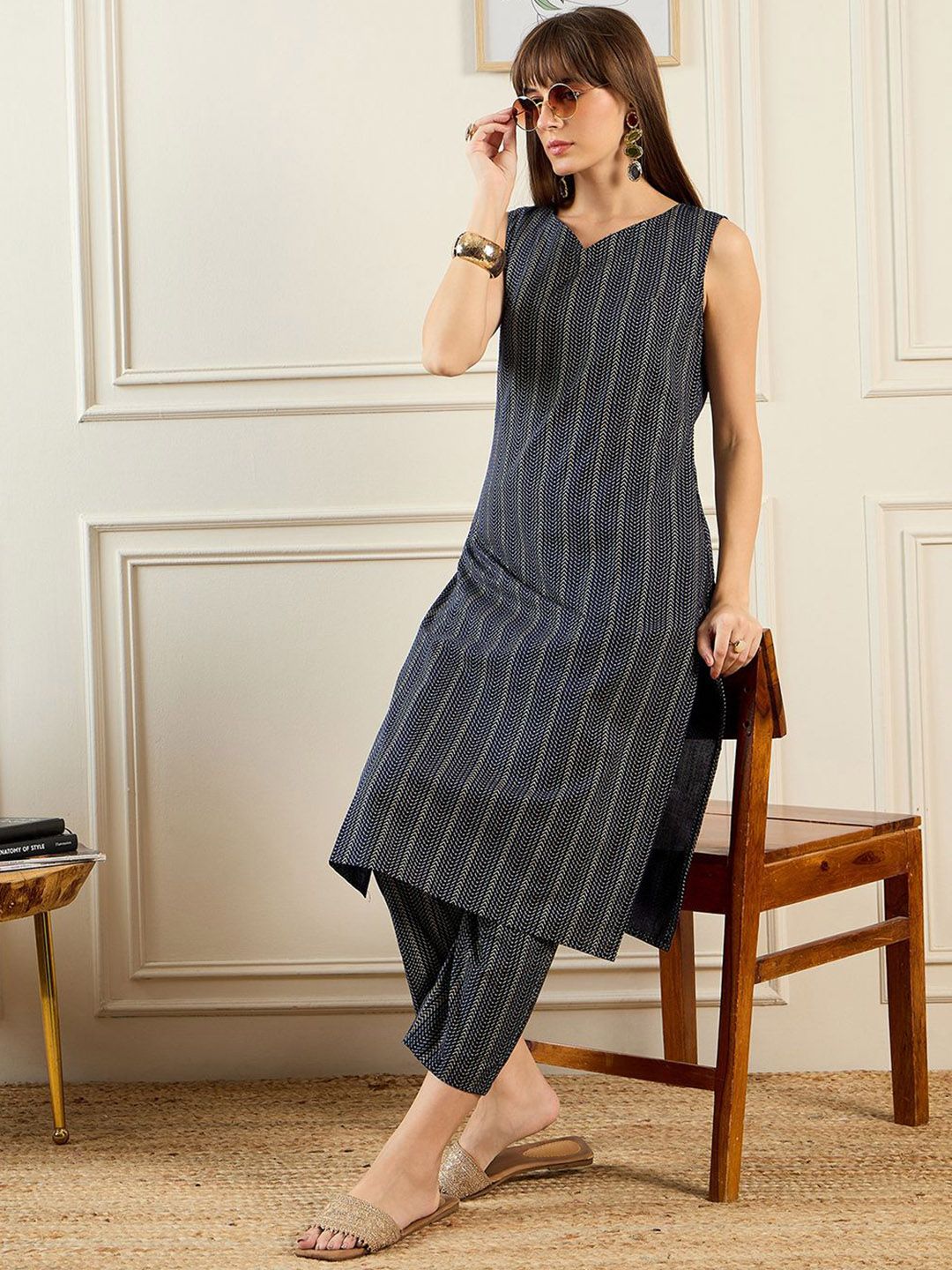 Indo Era Geometric Printed V-Neck Pure Cotton Straight Kurta With Trousers