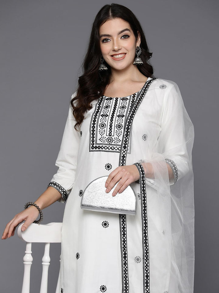 Indo Era Women Embroidered Regular Thread Work Kurta with Trousers & Dupatta