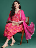 Indo Era Women Floral Printed Regular Pure Cotton Kurta with Palazzos & With Dupatta