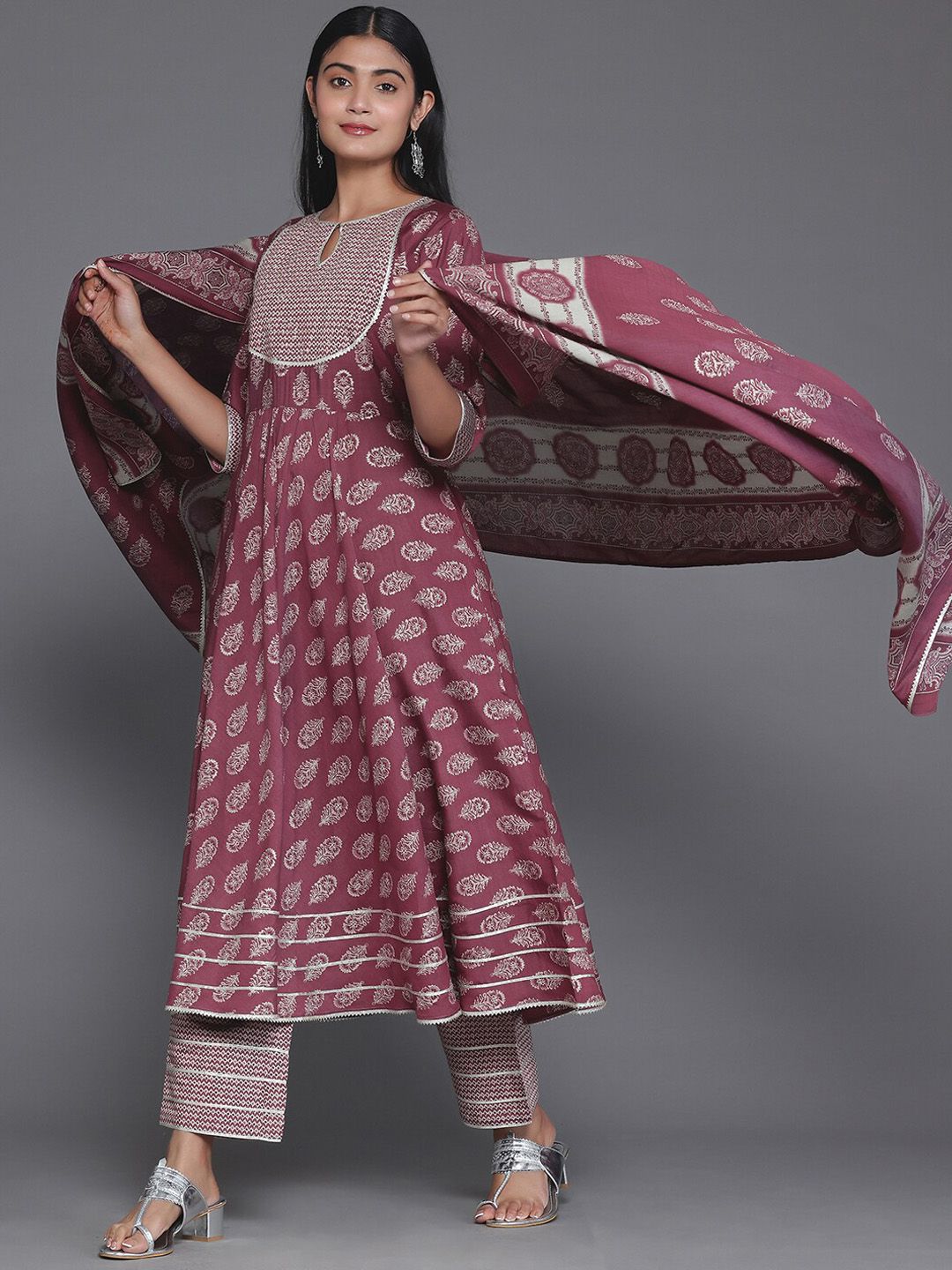 Libas Floral Printed Empire Gotta Patti Kurta with Palazzos & With Dupatta