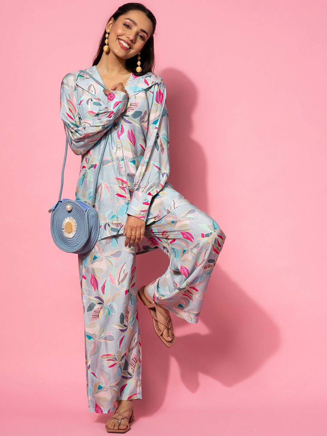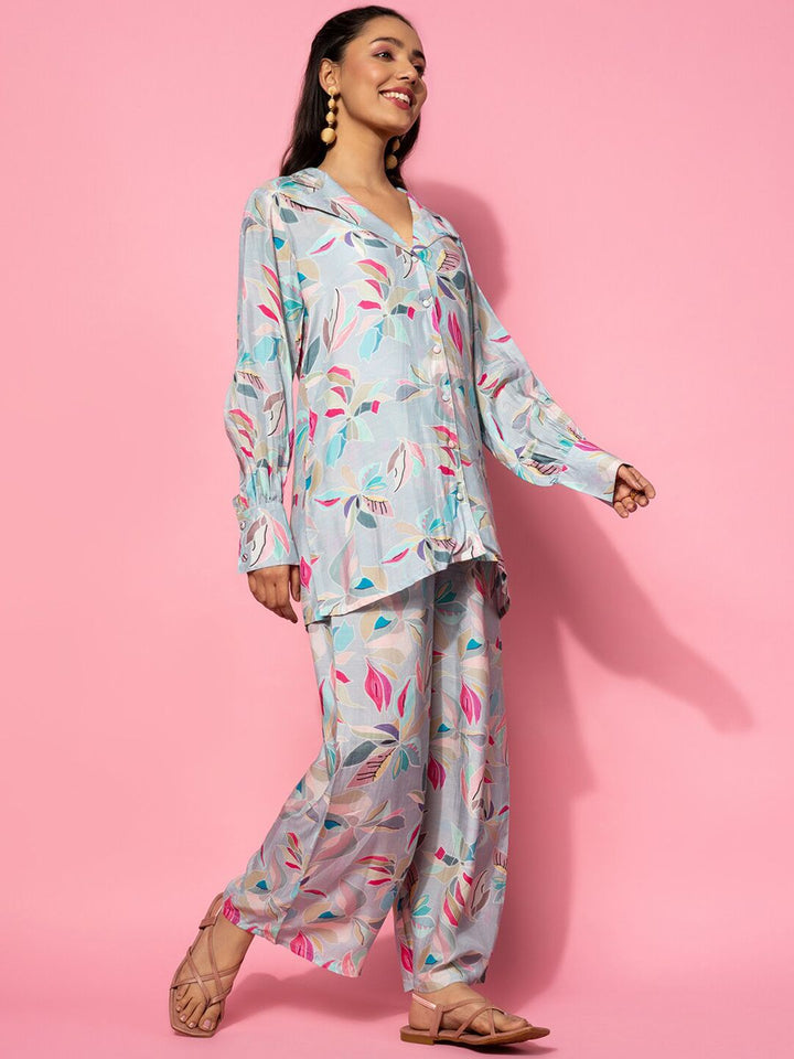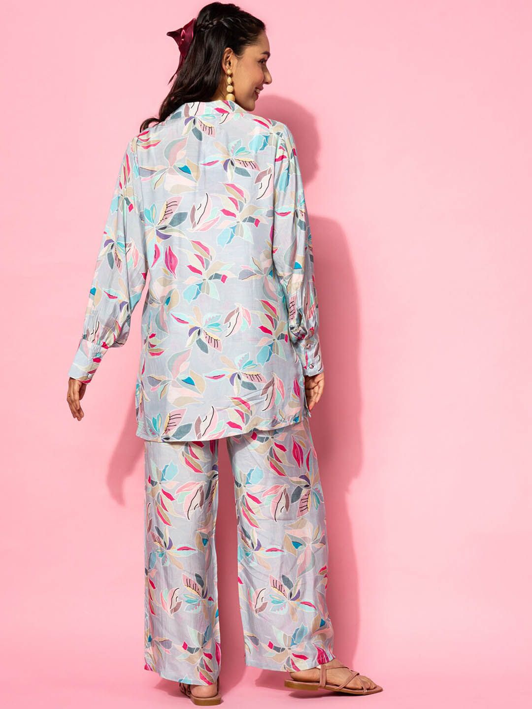 Libas Floral Printed Longline A-Line Shirt & Palazzo Set