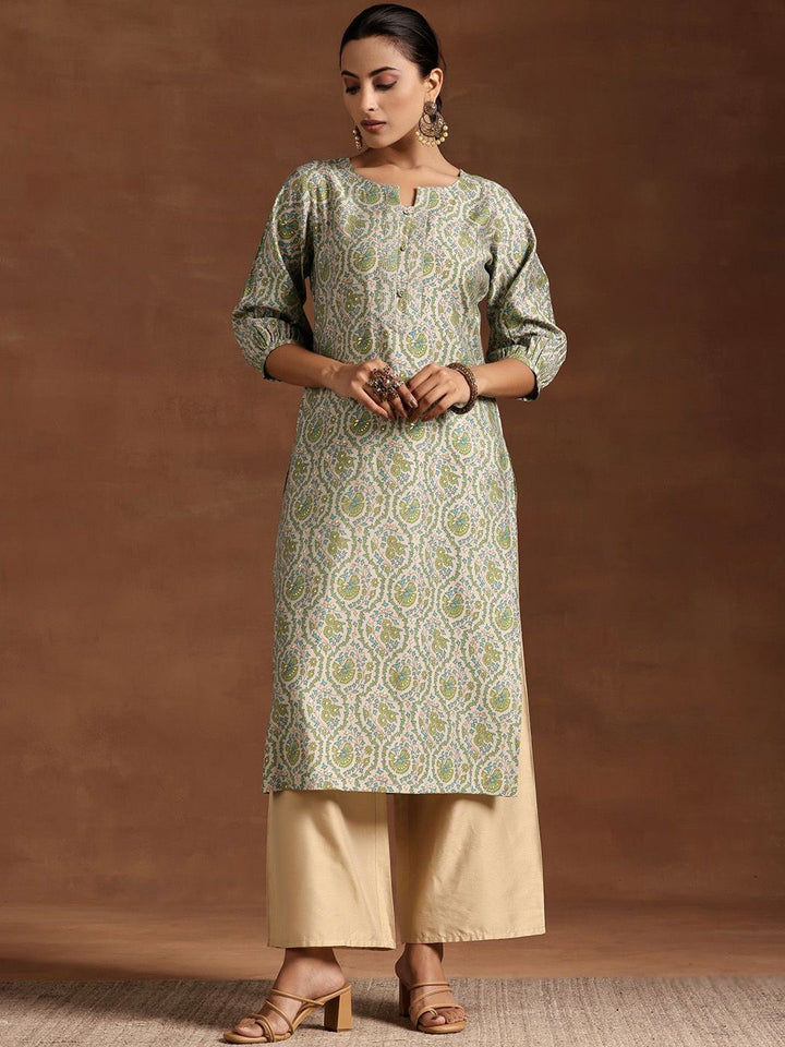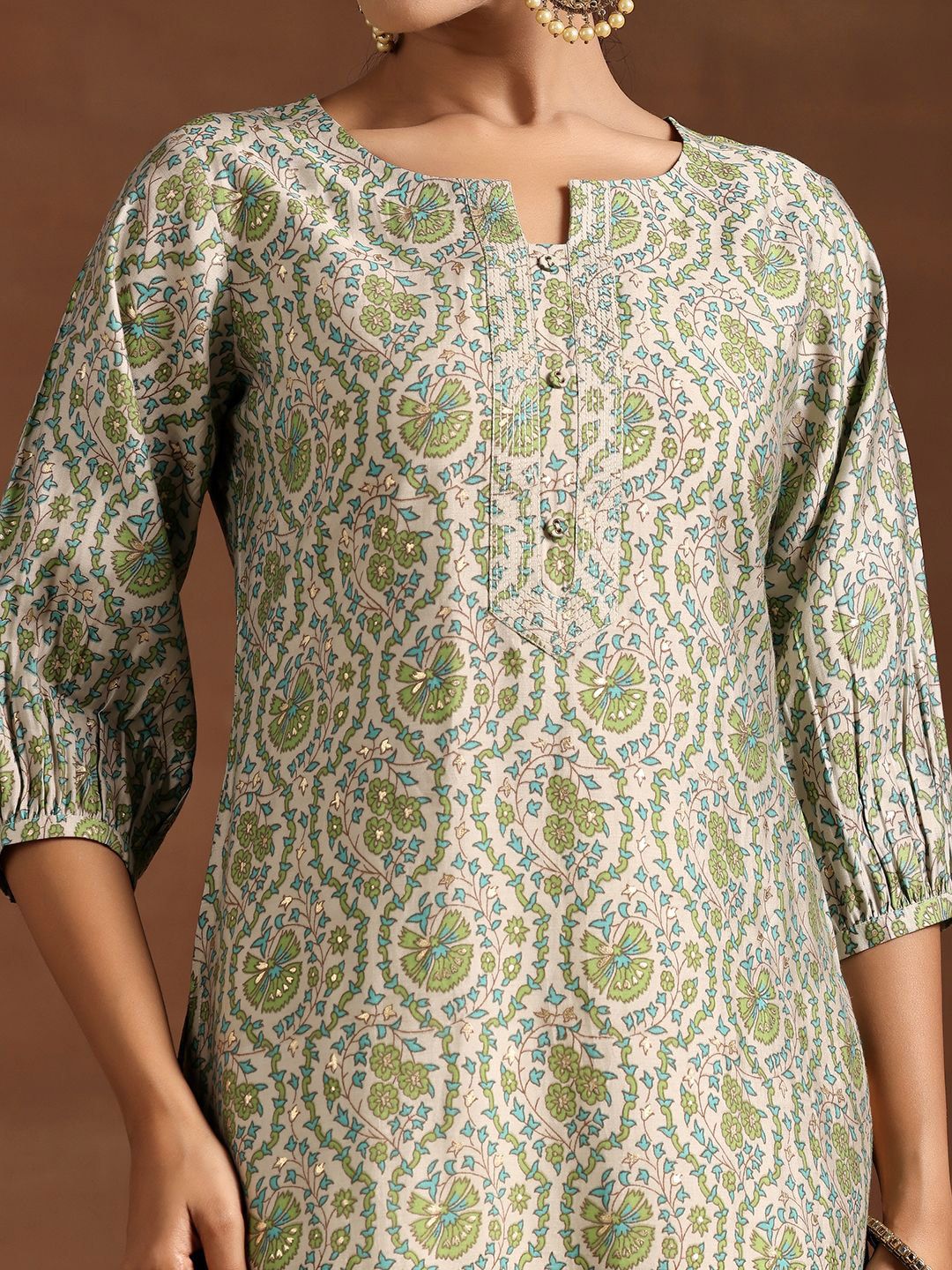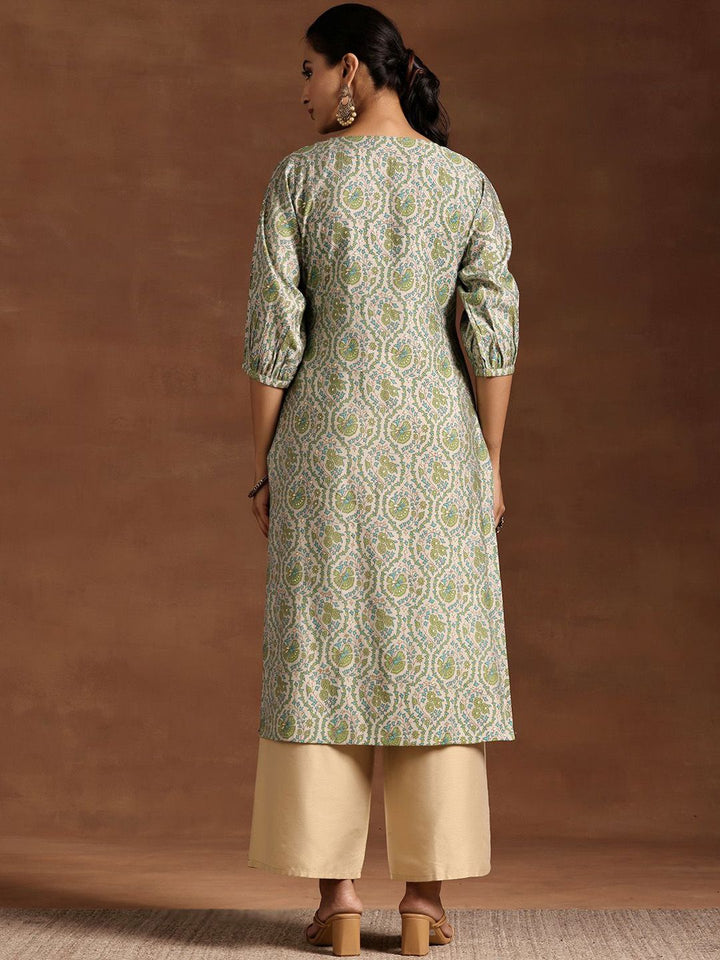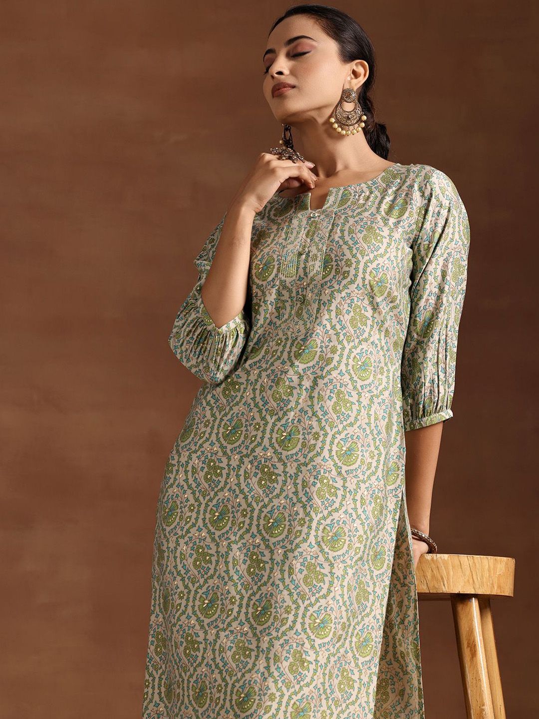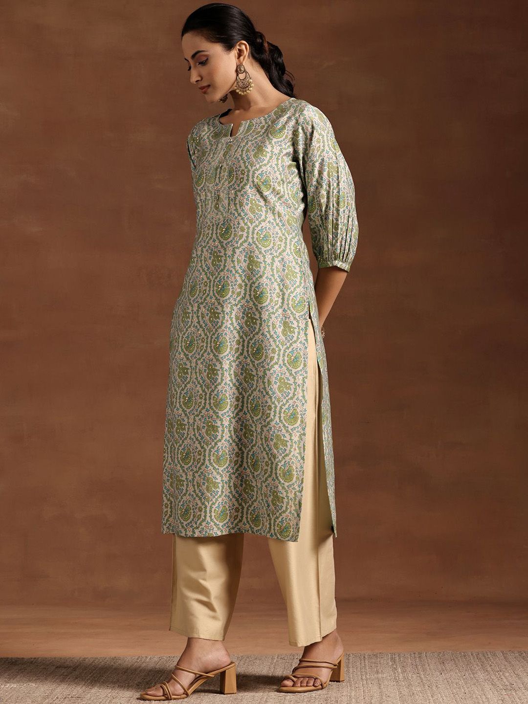 Libas Floral Printed Puff Sleeves Straight Kurta