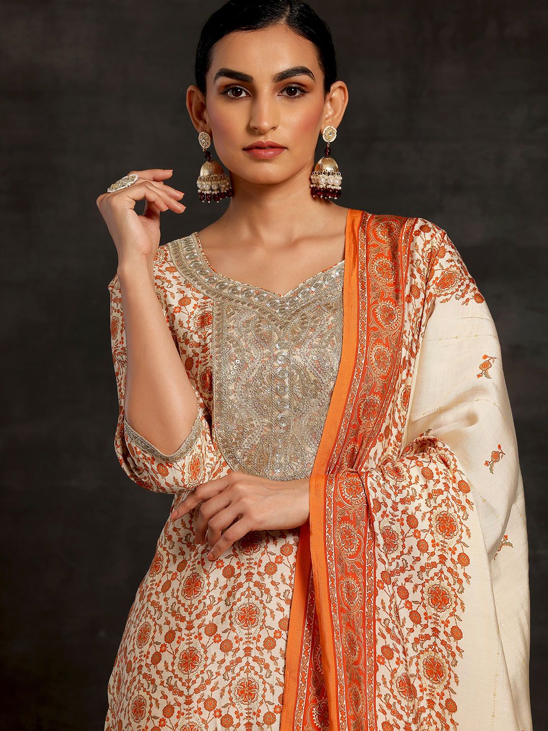 Libas Women Floral Printed Regular Sequinned Kurta with Palazzos & With Dupatta