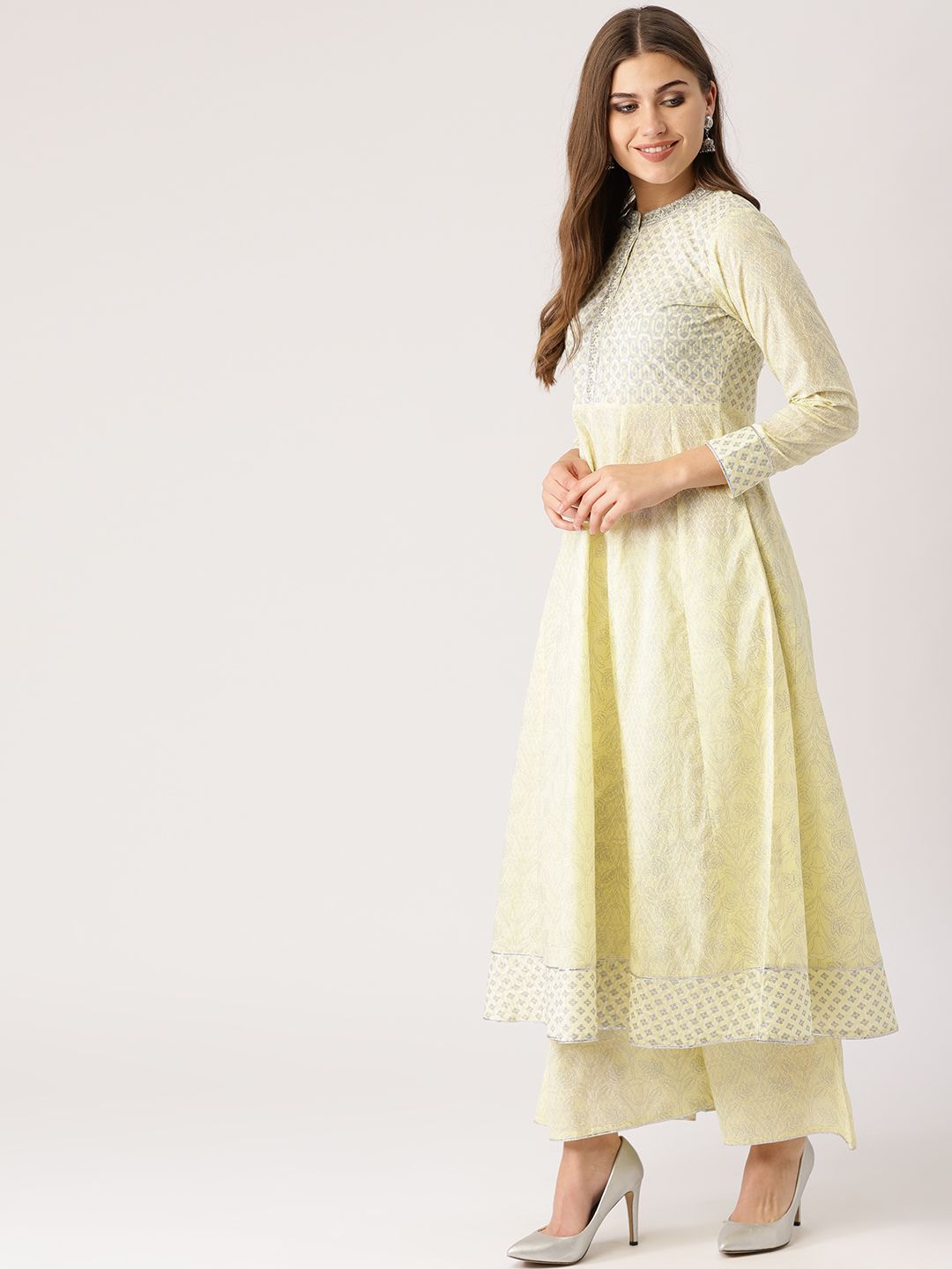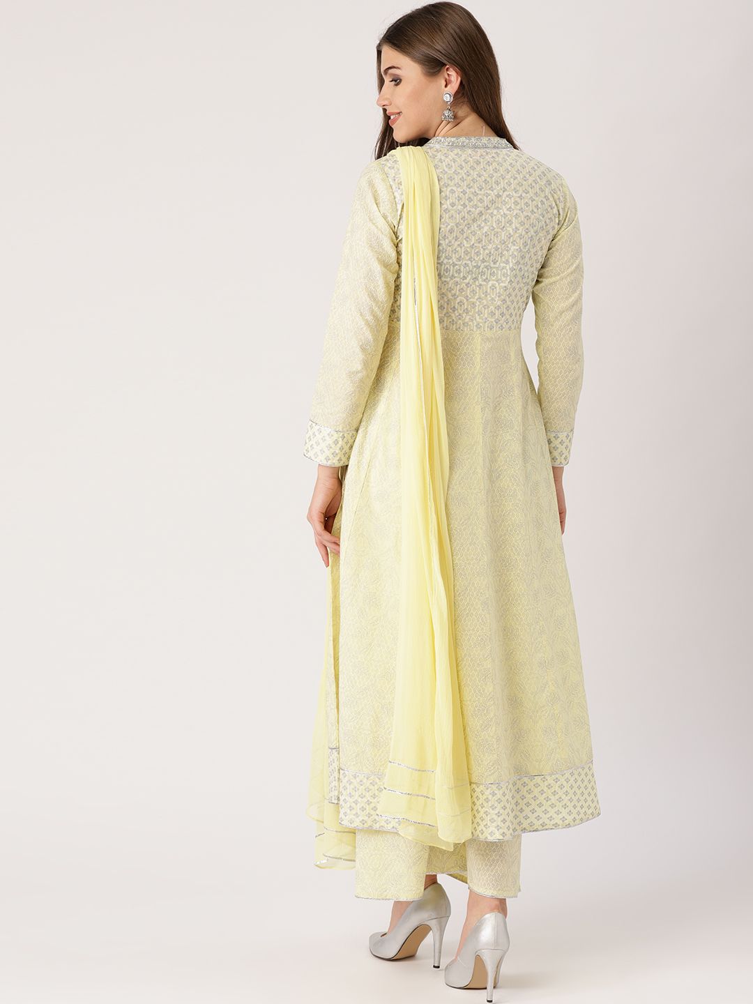 Libas Women Yellow & White Printed Kurta with Palazzos & Dupatta