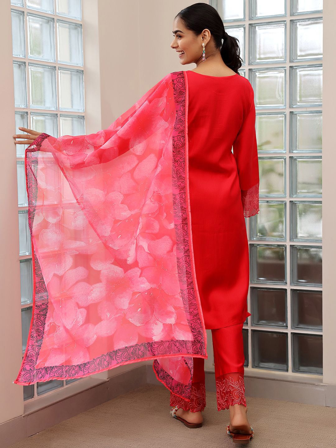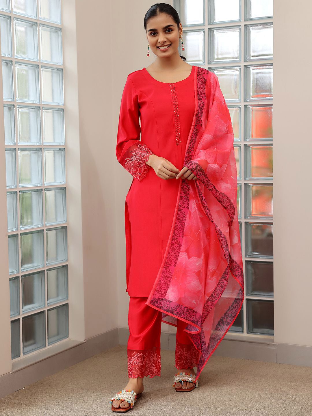 Libas Yoke Design Thread Work Straight Kurta with Trousers & Dupatta