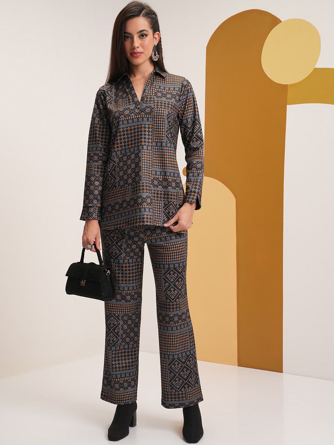 Vishudh Geometric Printed Shirt Collar Tunic With Trousers