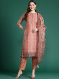 Indo Era Ethnic Motifs Printed Thread Work Chanderi Silk Kurta With Trousers & Dupatta