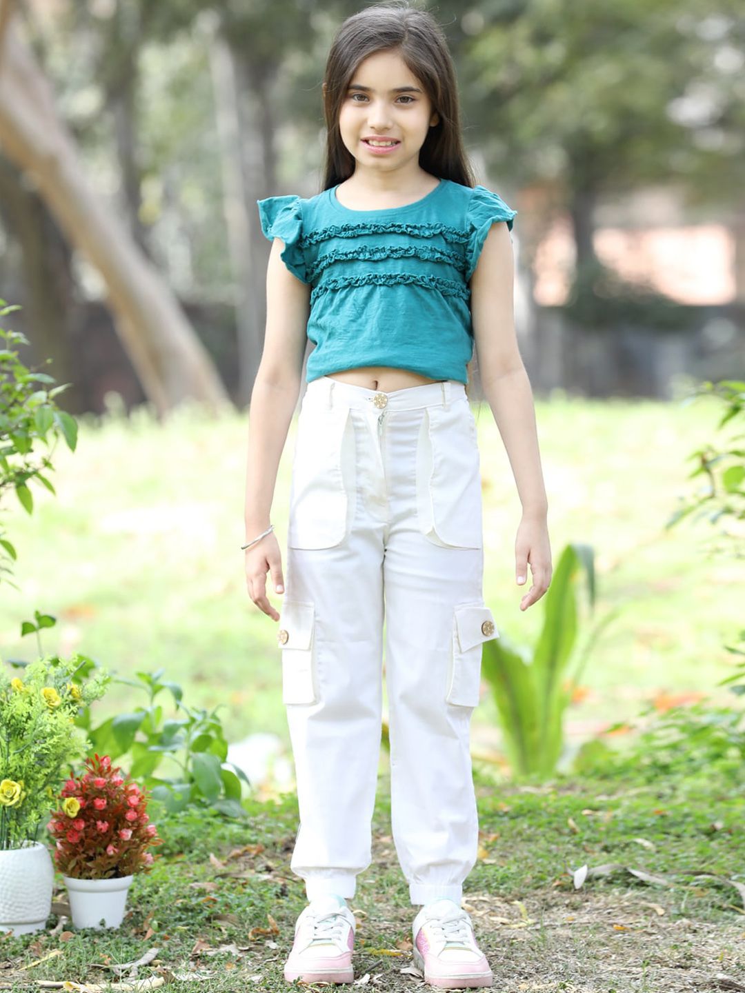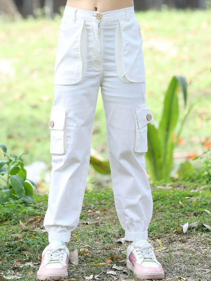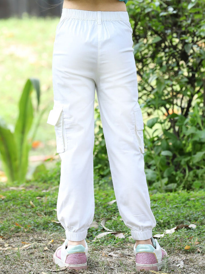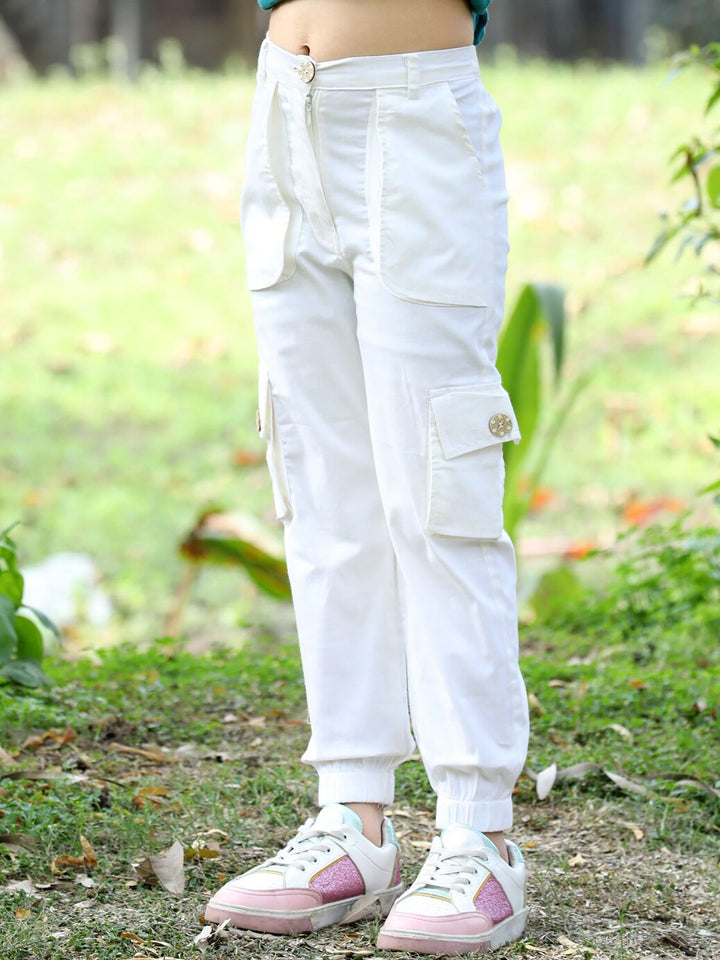 Cutiekins Girls Cotton Mid-Rise Flat-Front Plain Cargos Trousers