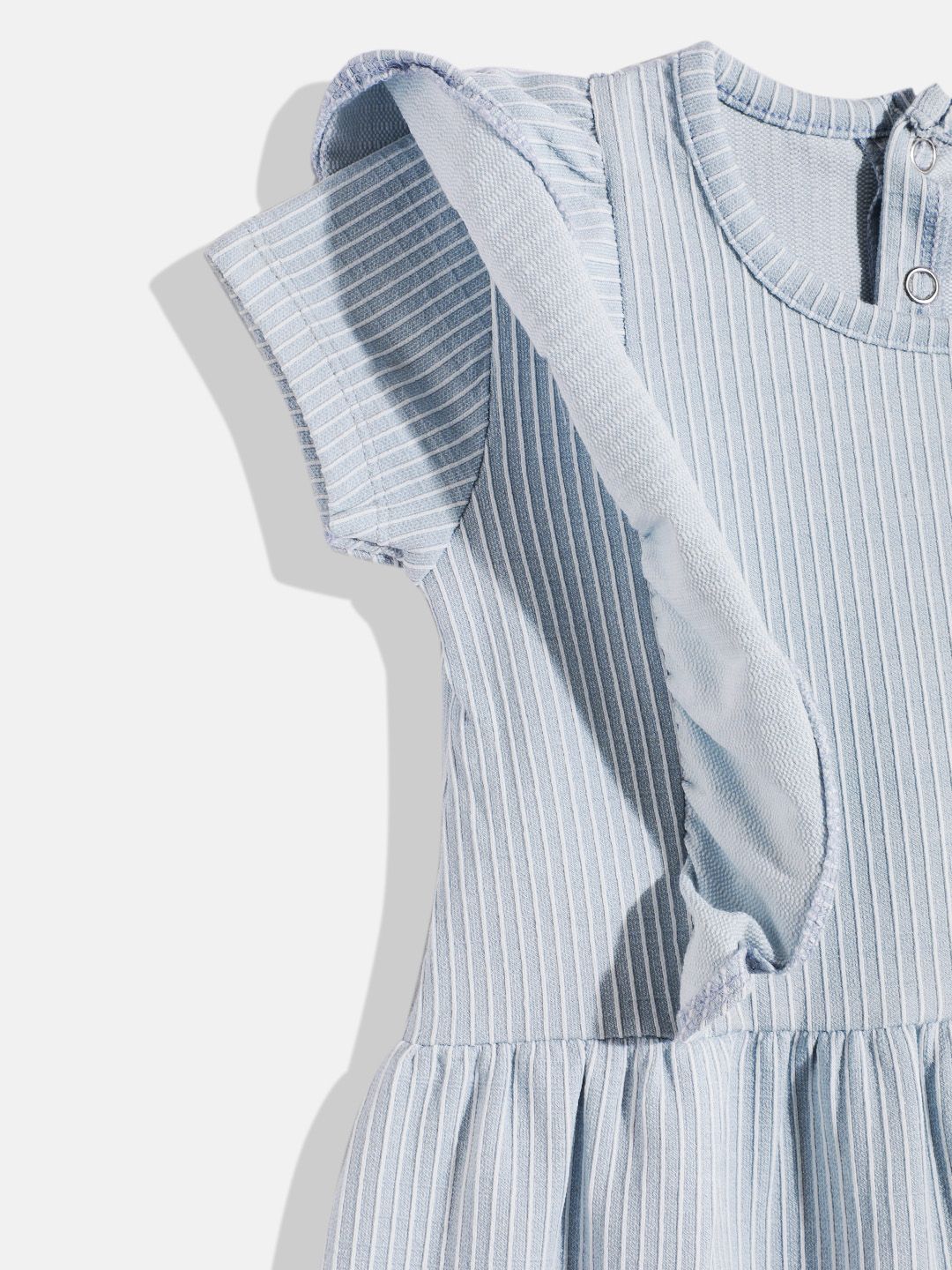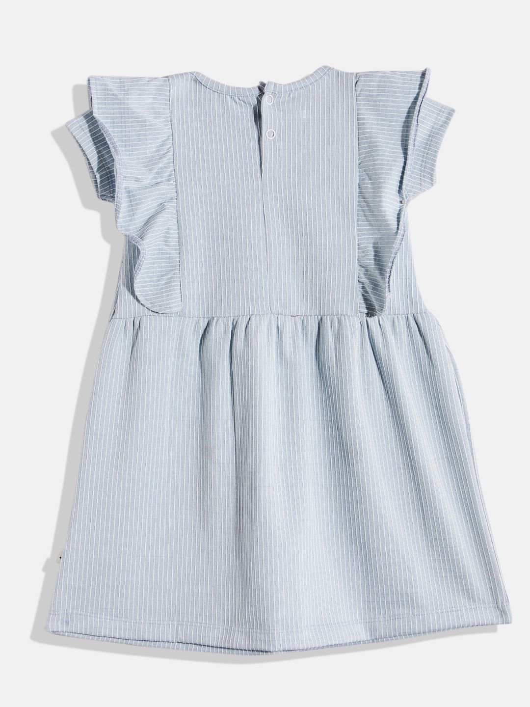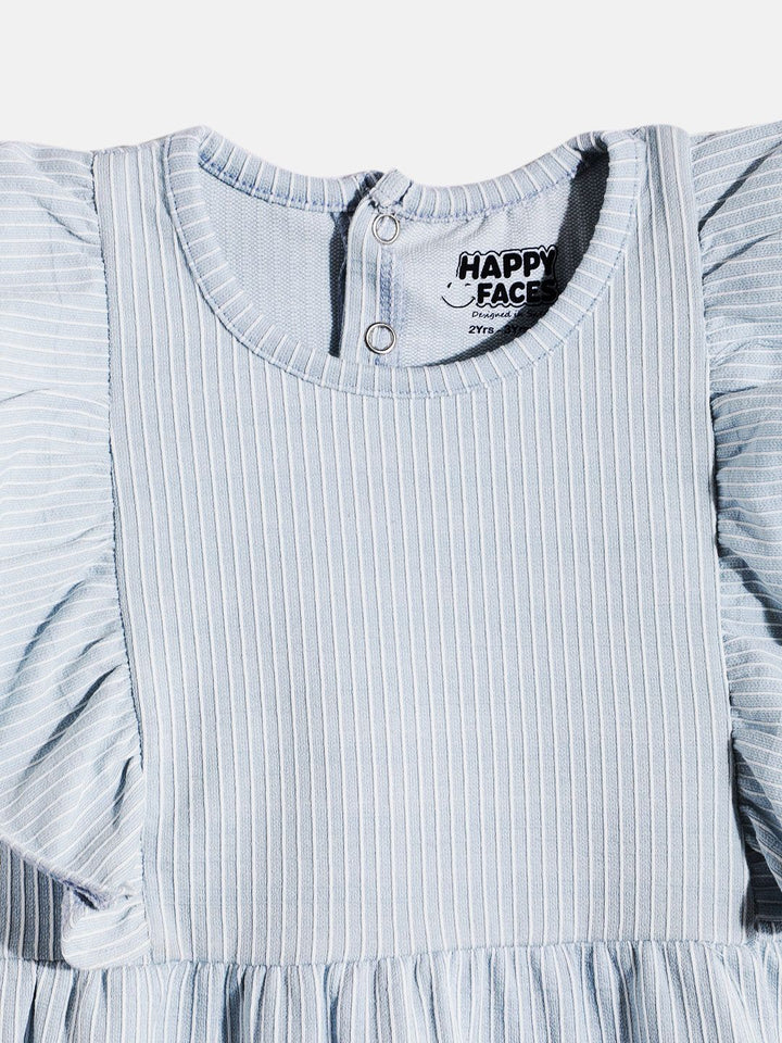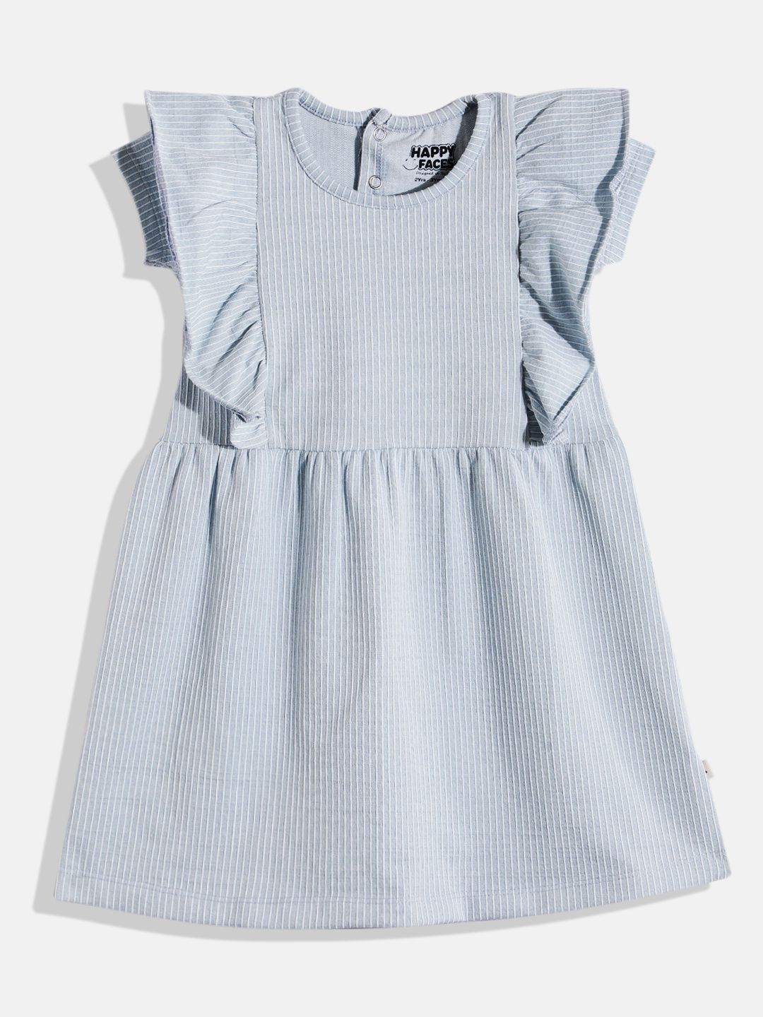 Happy Faces Girls Striped Ruffled Fit & Flare Pure Cotton Dress