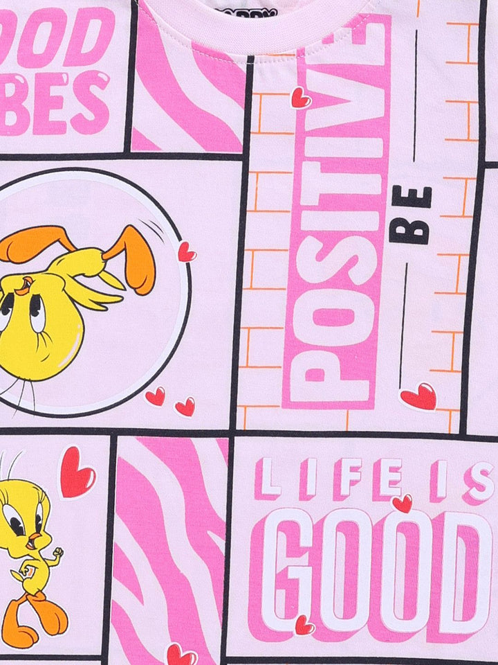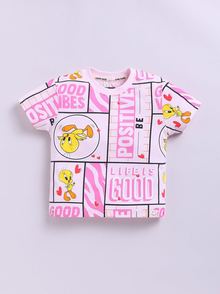 Happy Faces Girls Tweety Printed Pure Cotton T-shirt