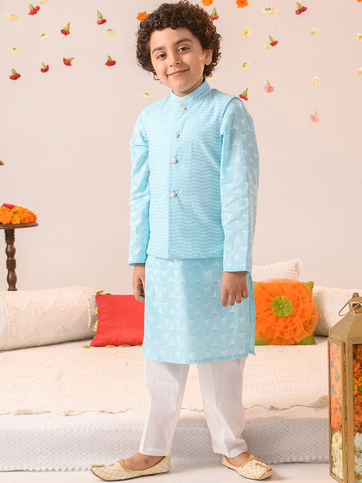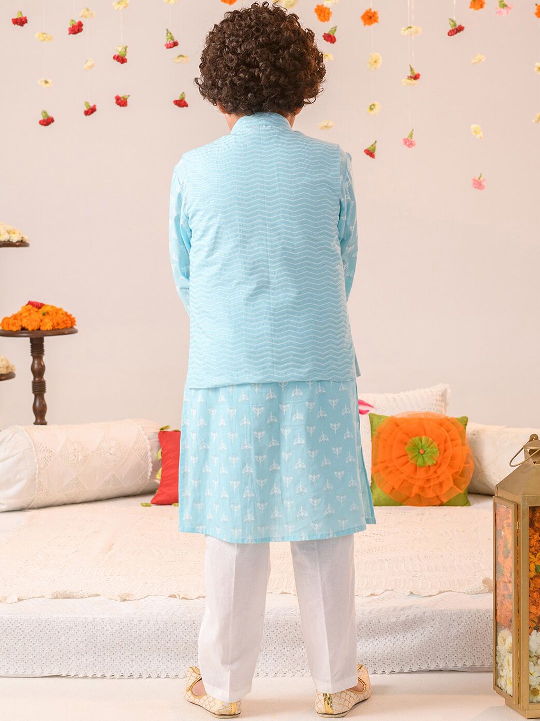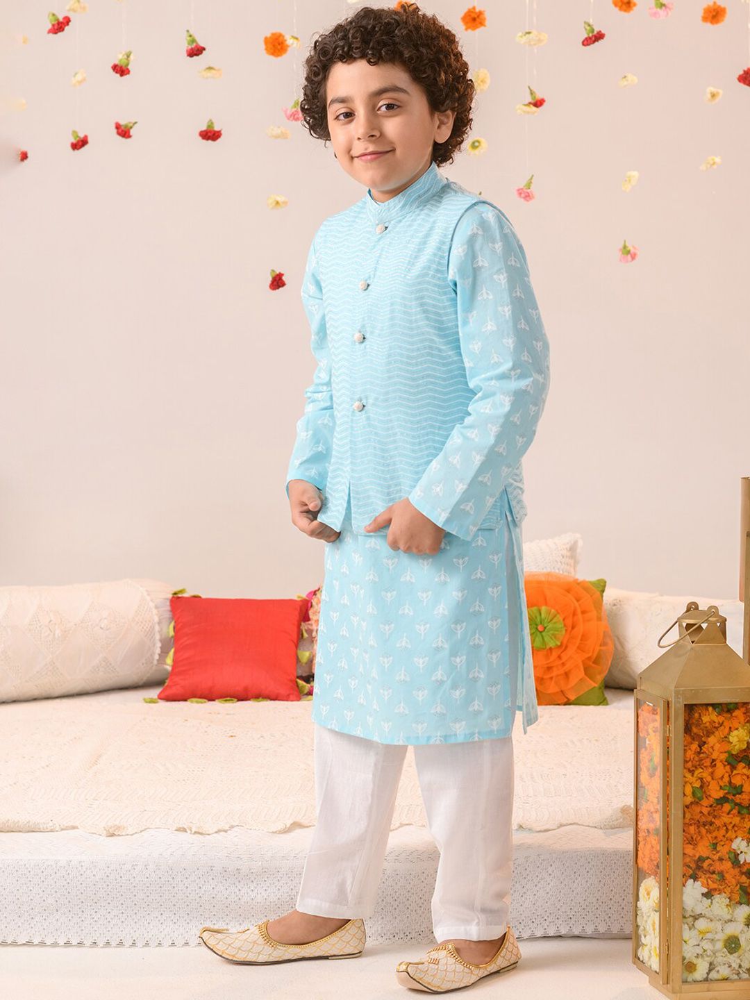 pspeaches Boys Striped Pure Cotton Kurta with Pyjamas & Nahru Jacket