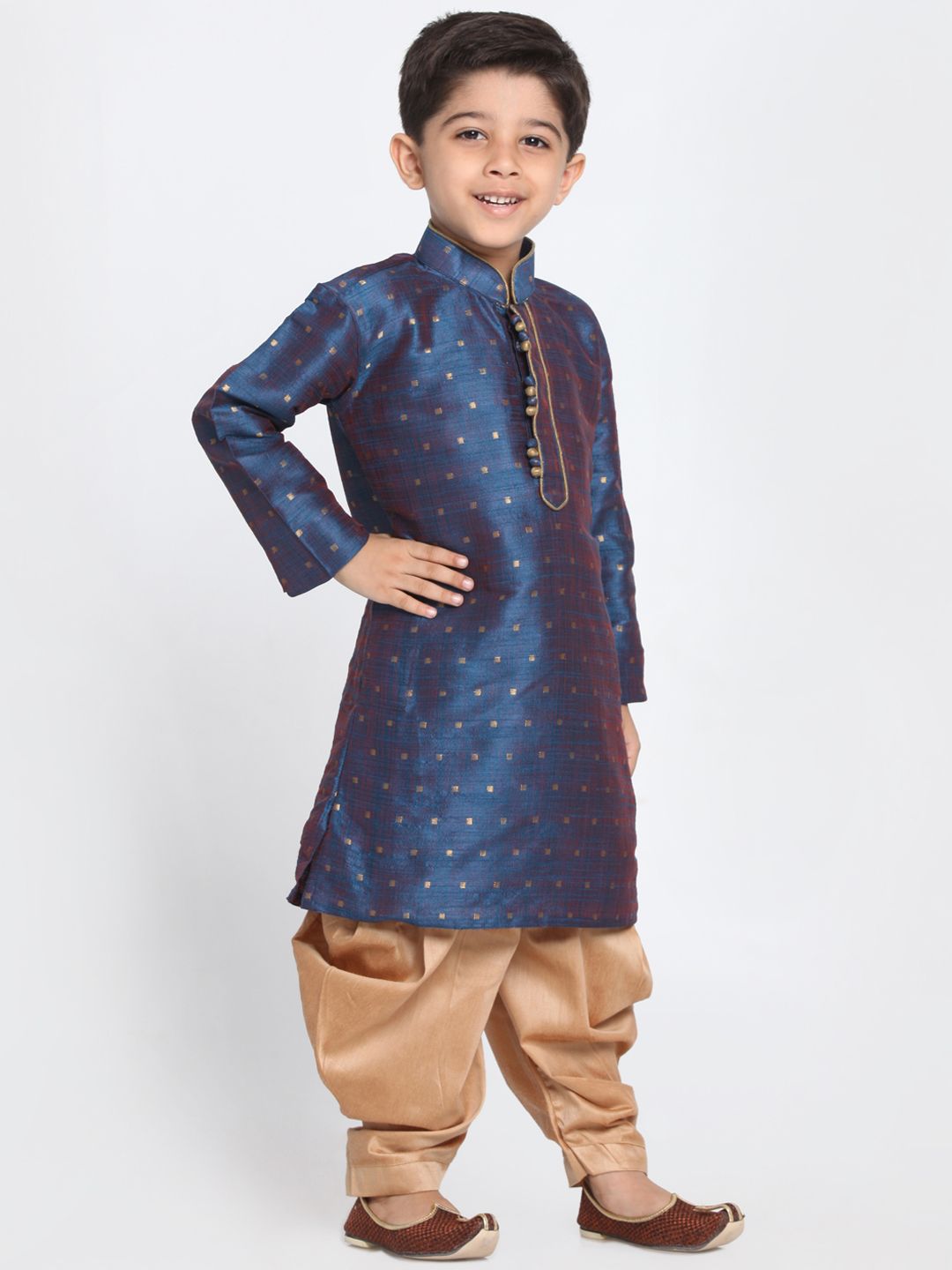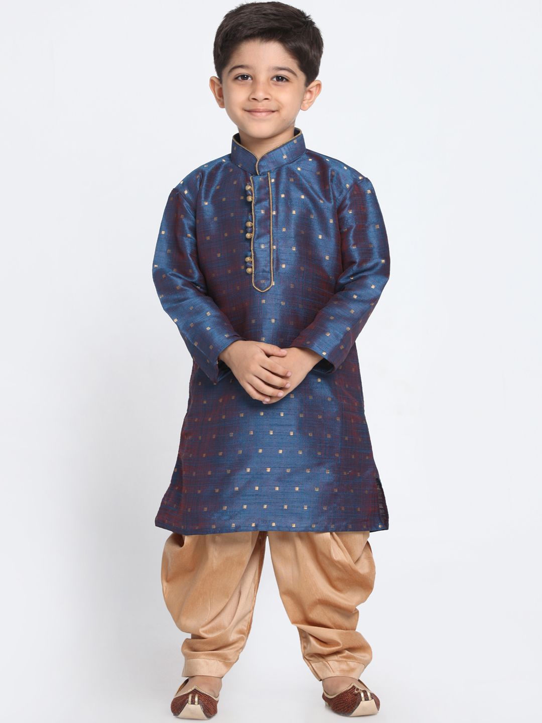 VASTRAMAY Boys Navy Blue & Beige Self Design Kurta with Dhoti Pants