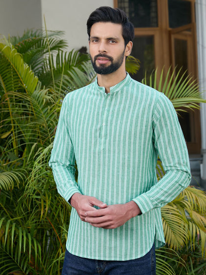 House of Pataudi Mandarin Collar Roll-Up Sleeves Pure Cotton Pathani Rozana Kurta