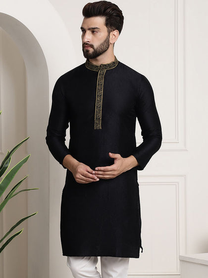 SOJANYA Men Off-White Embroidered Straight Kurta
