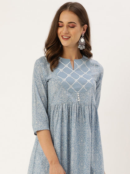 Varanga Women Blue & White Bandhani Printed Gotta Patti Straight Cotton Kurta