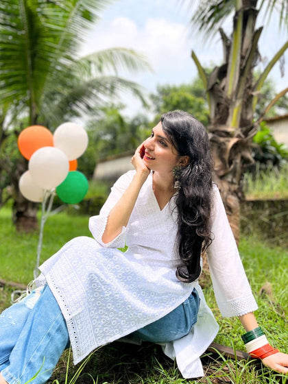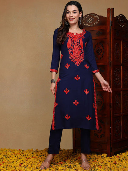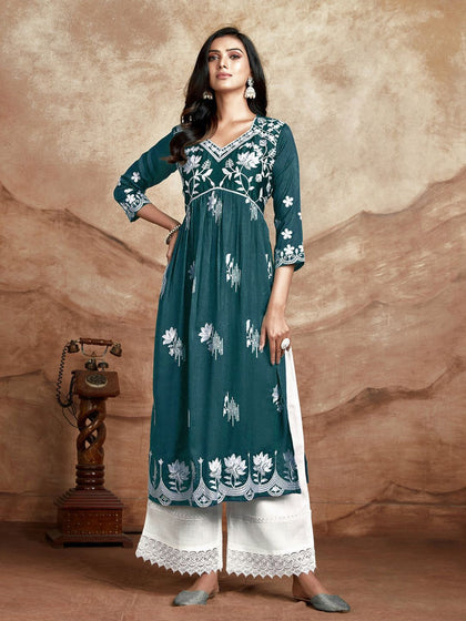 KALINI Ethnic Motifs Embroidered Chikankari Kurta