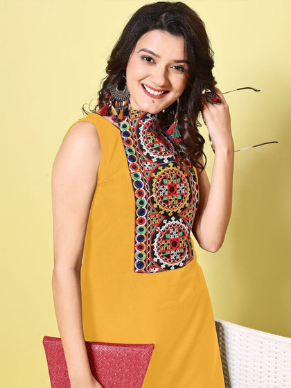 Kalini Women Rayon Patch Work Shouler Strep Summer Sleeveless Kurta