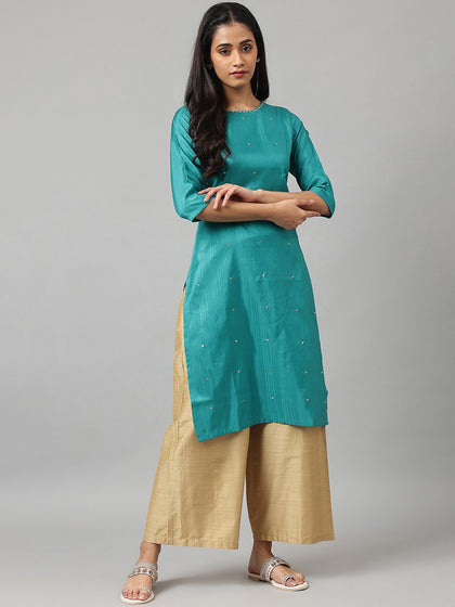 W Pure Cotton Round Neck Regular Sleeves Straight Kurta