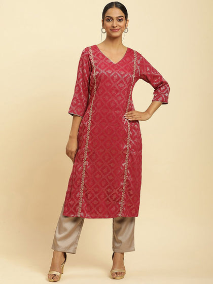 Printed V-Neck Kurta