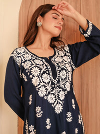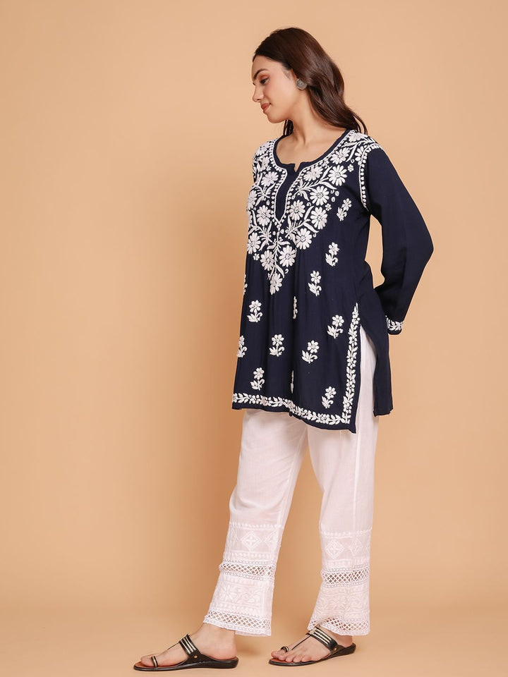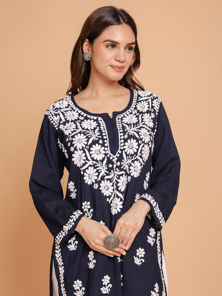 HOUSE OF KARI Floral Embroidered Round Neck Long Sleeves Straight Kurti