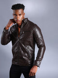 The Indian Garage Co Men Brown Solid Faux Biker Jacket