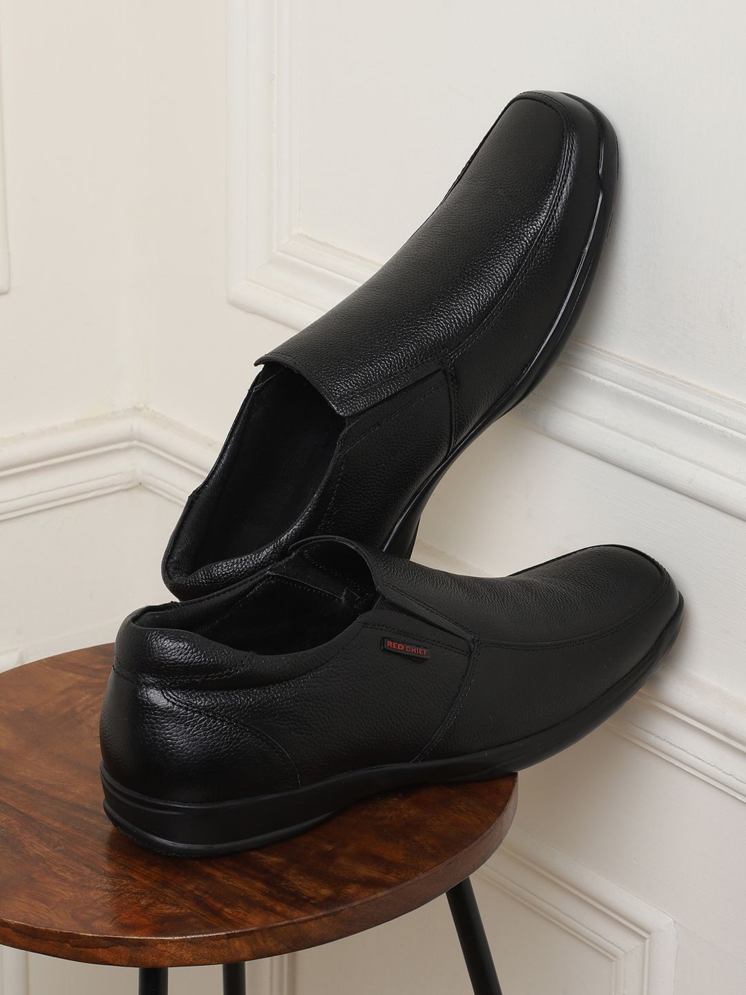 Red Chief Men Black Leather Formal Slip-on Shoes