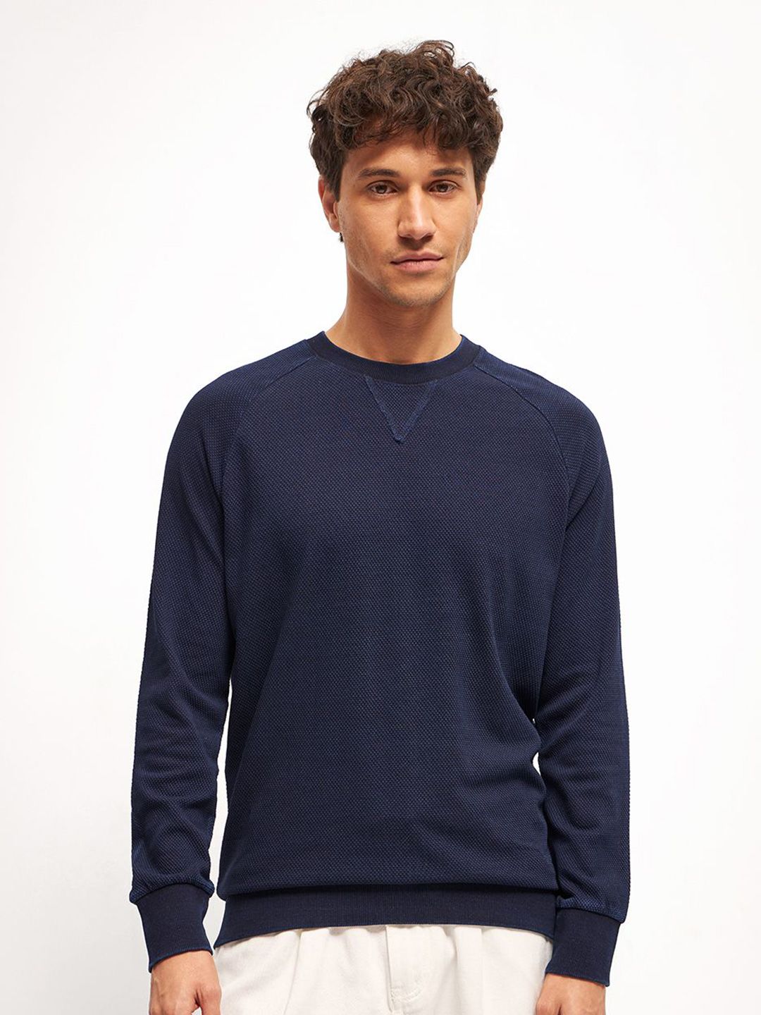 THE BEAR HOUSE Men Crew Neck Self-Design Pullover Sweater