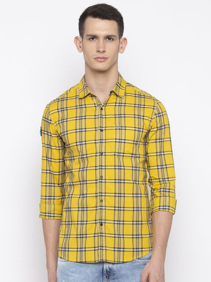 The Indian Garage Co Men Spread Collar Checked Cotton Slim Fit Casual Shirt