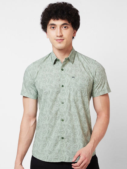SPYKAR Men Slim Fit Floral Printed Opaque Mandarin Collar Casual Shirt
