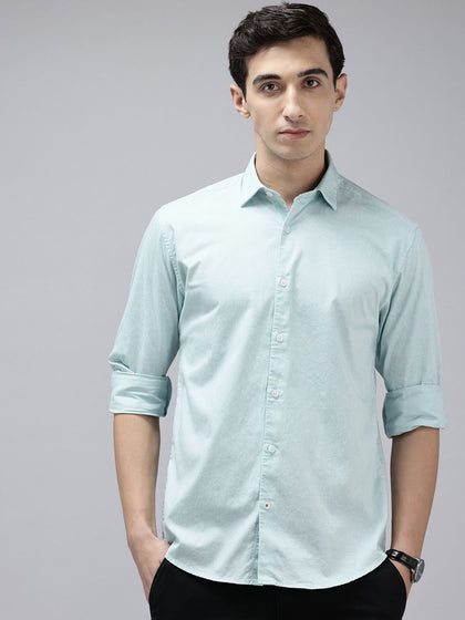 Raymond Pure Cotton Self Design Slim Fit Textured Casual Shirt