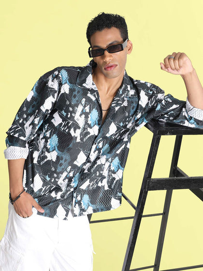 Bene Kleed Men Classic Cuban Collar Abstract Printed Oversized Casual Shirt