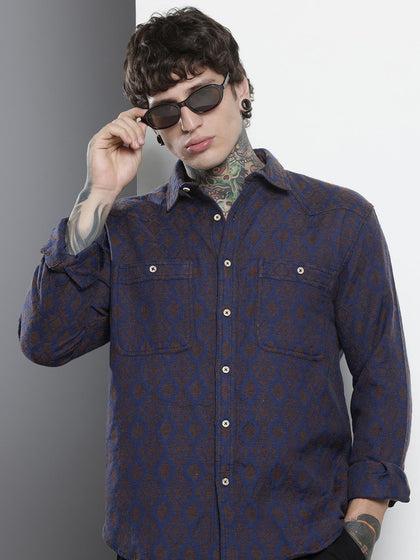 The Indian Garage Co Self-Design Geometric Drop-Shoulder Sleeves Relaxed Fit Casual Shirt